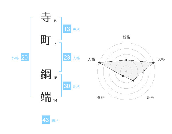 寺町 鋼端さんを姓名の画数から五運を鑑定