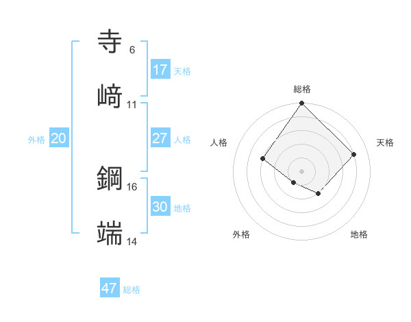 寺﨑 鋼端さんの総格は47画の5点!