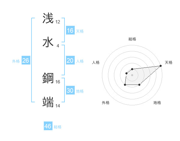 浅水 鋼端さんの天格は16画の5点!