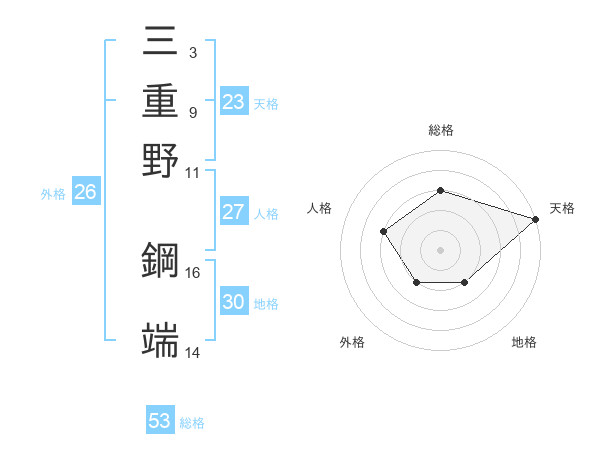 三重野 鋼端さんを姓名の画数から五運を鑑定