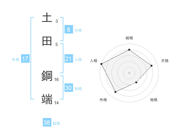 土田 鋼端さんを姓名の画数から五運を鑑定