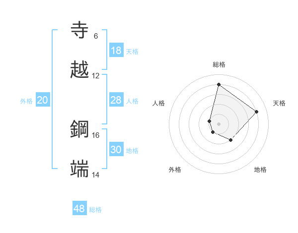 寺越 鋼端さんを姓名の画数から五運を鑑定