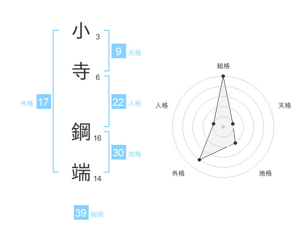 小寺 鋼端さんを姓名の画数から五運を鑑定