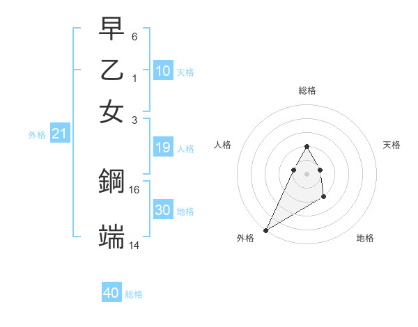 早乙女 鋼端さんを姓名の画数から五運を鑑定
