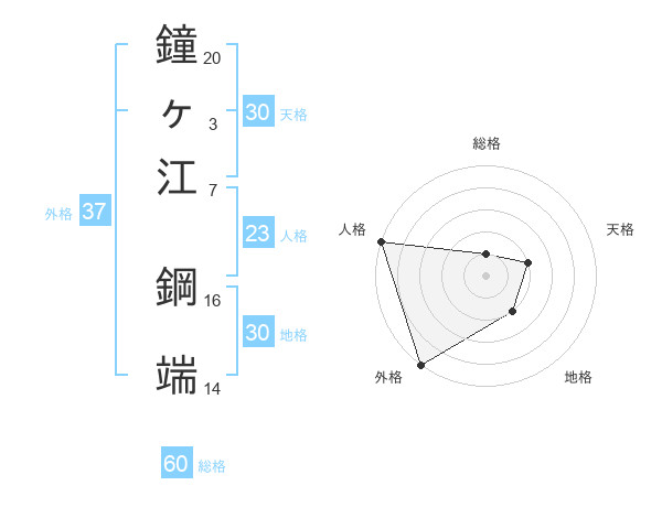 鐘ヶ江 鋼端さんの総格は60画の1点!