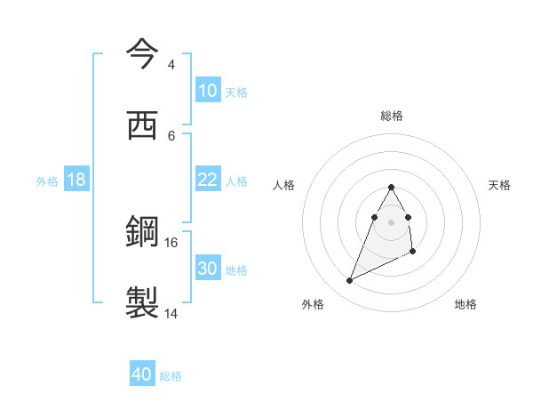 今西 鋼製さんを姓名の画数から五運を鑑定