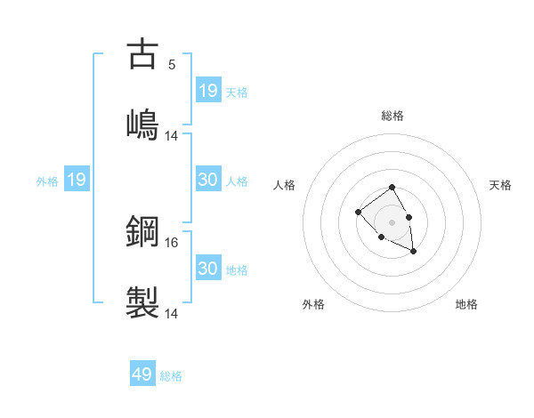 古嶋 鋼製さんの総格は49画の2点