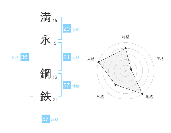 満永 鋼鉄さんを姓名の画数から五運を鑑定