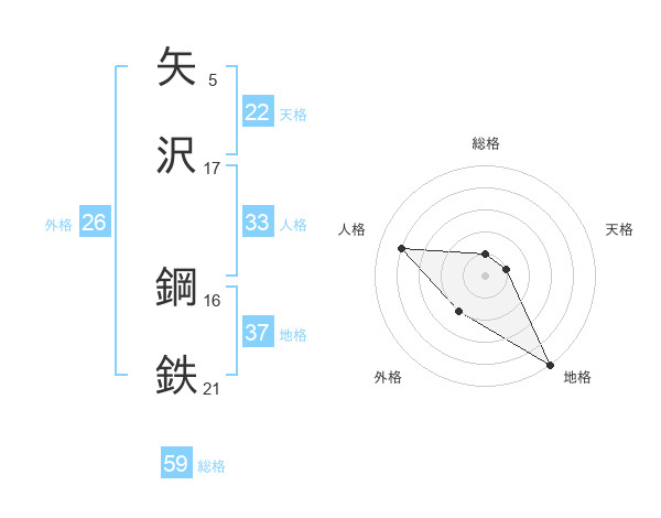 矢沢 鋼鉄さんの総格は59画の1点!