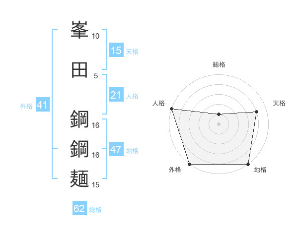 峯田 鋼鋼麺さんの総格は62画の1点!