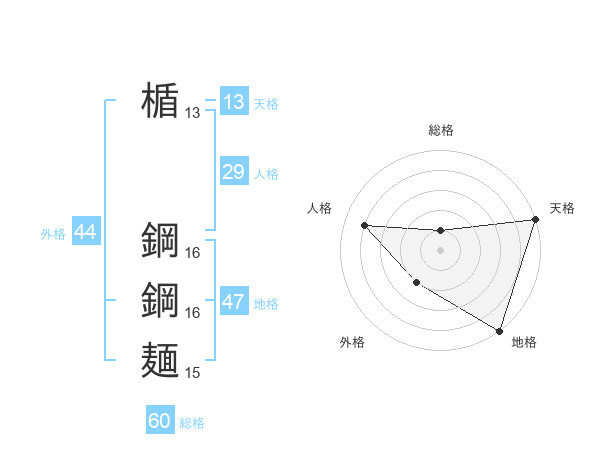 楯 鋼鋼麺さんの総格は60画の1点!
