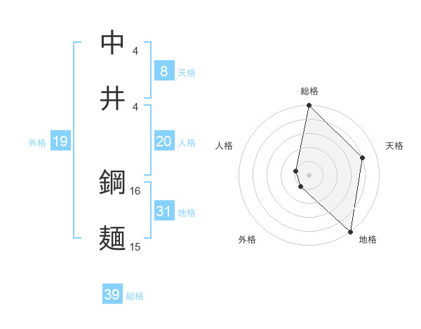 中井 鋼麺さんの総格は39画の5点!