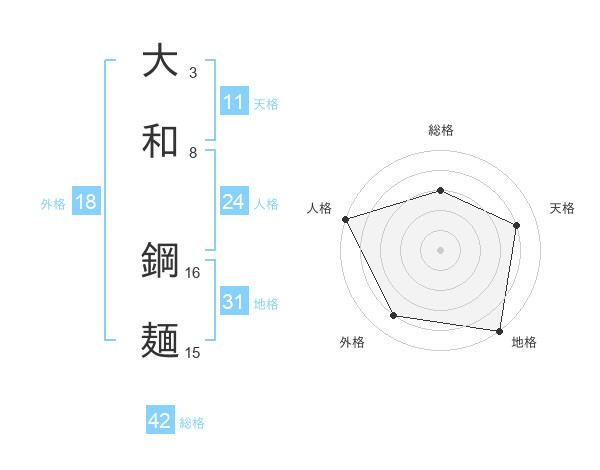 大和 鋼麺さんを姓名の画数から五運を鑑定
