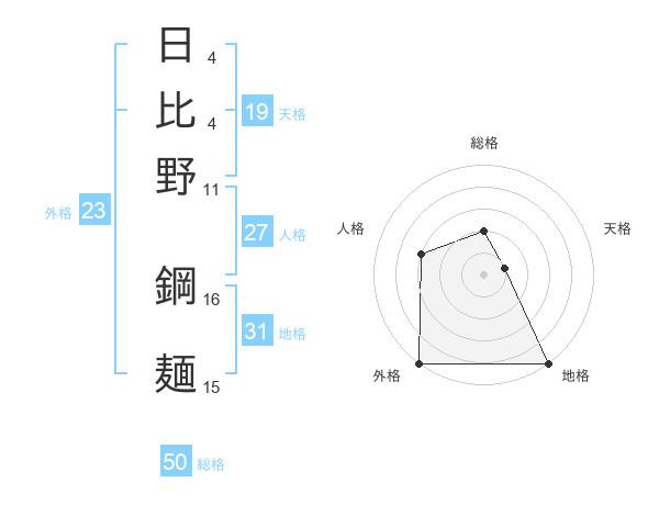 日比野 鋼麺さんを姓名の画数から五運を鑑定