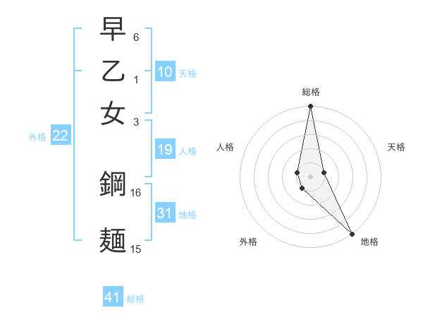早乙女 鋼麺さんを姓名の画数から五運を鑑定