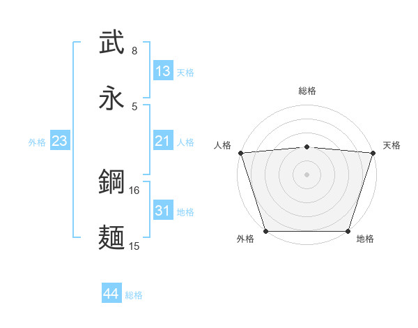 武永 鋼麺さんの総格は44画の2点!