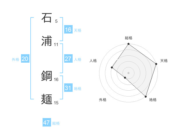 石浦 鋼麺さんを姓名の画数から五運を鑑定