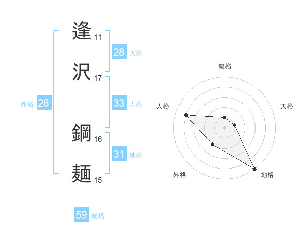 逢沢 鋼麺さんを姓名の画数から五運を鑑定