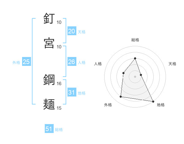 釘宮 鋼麺さんを姓名の画数から五運を鑑定
