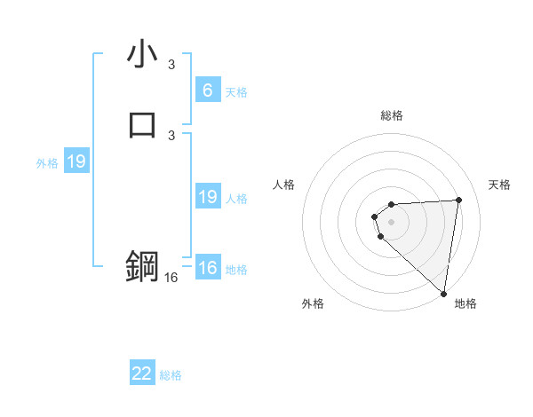 小口 鋼さんの外格は19画の1点!