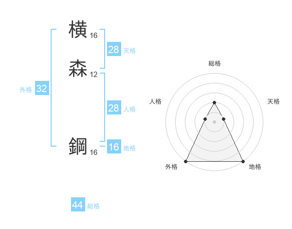横森 鋼さんの総格は44画の2点!