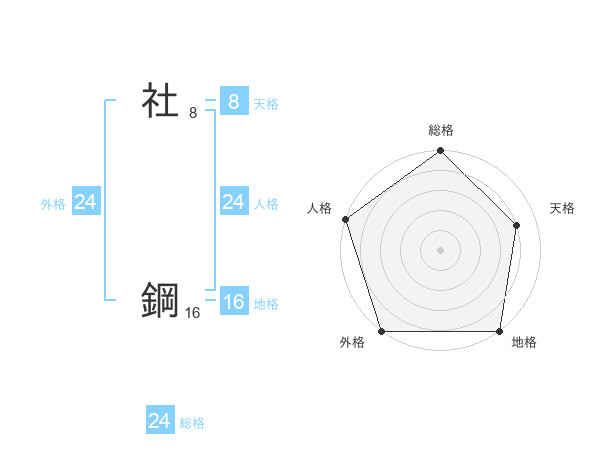 社 鋼さんの総格は24画の5点!