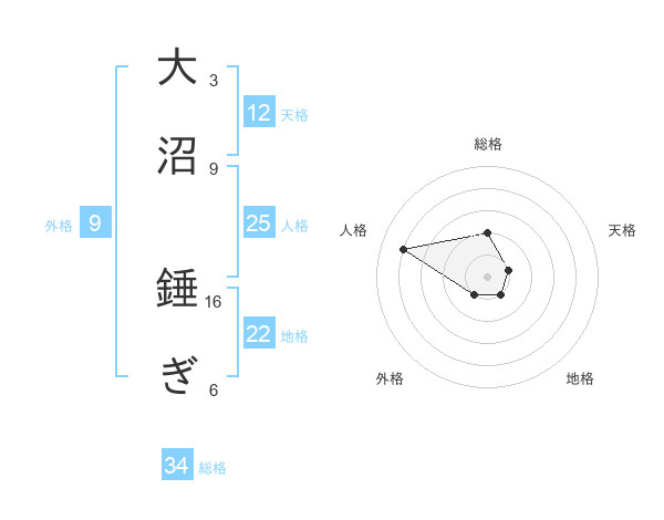大沼 錘ぎさんの総格は34画の2点