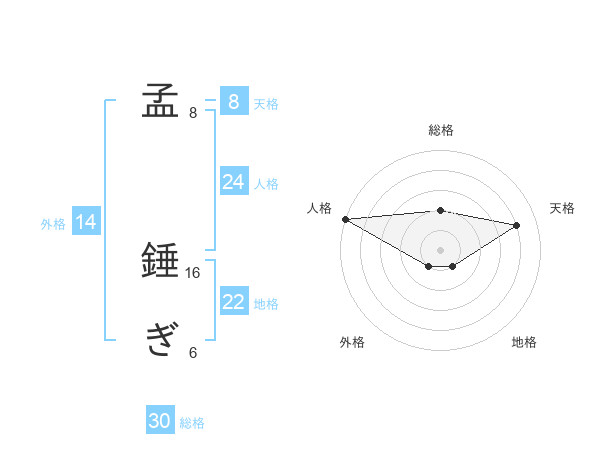 孟 錘ぎさんの総格は30画の2点!