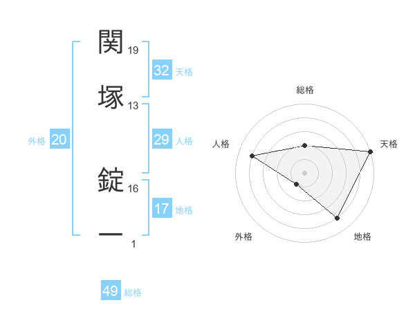 関塚 錠一さんの総格は49画の2点!