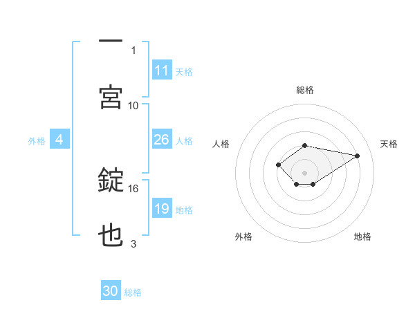一宮 錠也さんの総格は30画の2点!