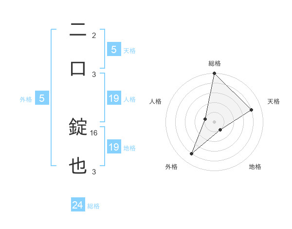 二口 錠也さんの天格は5画の4点!