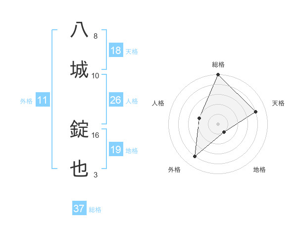 八城 錠也さんの総格は37画の5点!