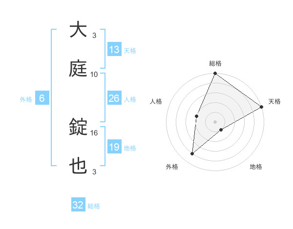 大庭 錠也さんの総格は32画の5点!