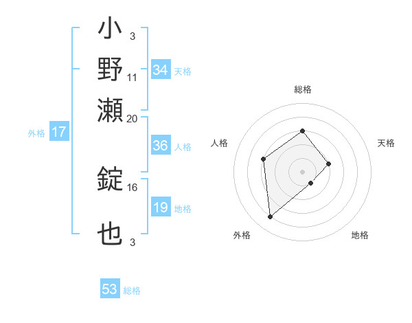 小野瀬 錠也さんを姓名の画数から五運を鑑定