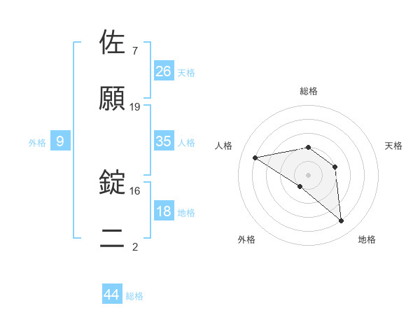 佐願 錠二さんを姓名の画数から五運を鑑定