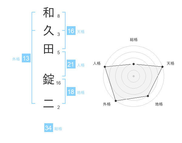 和久田 錠二さんを姓名の画数から五運を鑑定