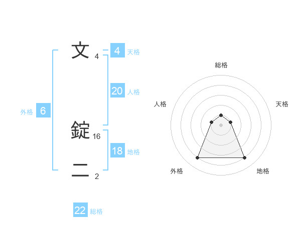 文 錠二さんの総格は22画の1点!