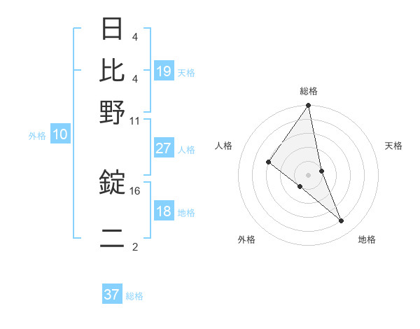 日比野 錠二さんを姓名の画数から五運を鑑定