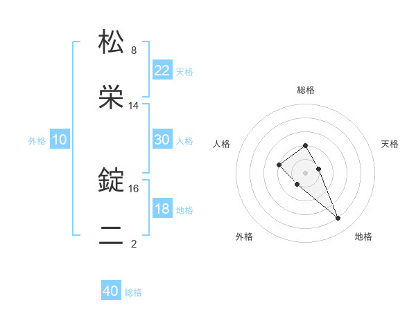 松栄 錠二さんの天格は22画の1点!