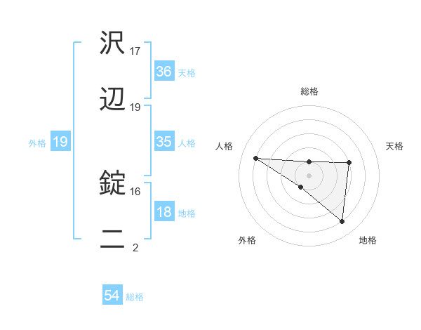 沢辺 錠二さんの総格は54画の1点!
