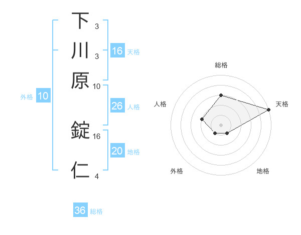 下川原 錠仁さんを姓名の画数から五運を鑑定