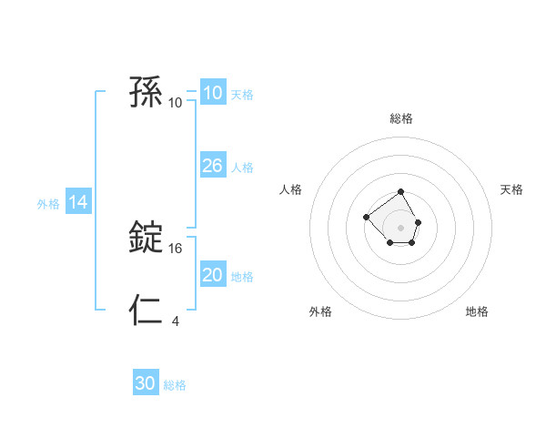 孫 錠仁さんを姓名の画数から五運を鑑定