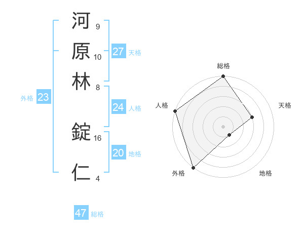 河原林 錠仁さんを姓名の画数から五運を鑑定
