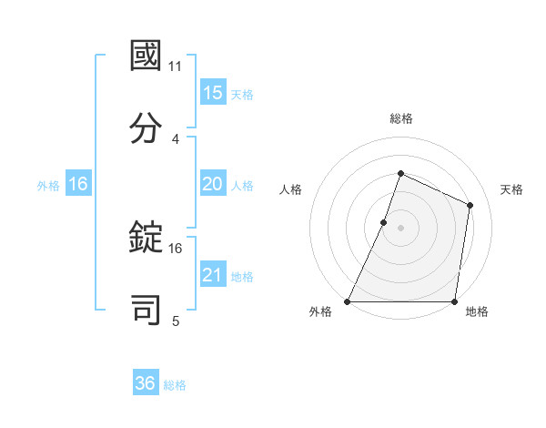 國分 錠司さんの外格は16画の5点!