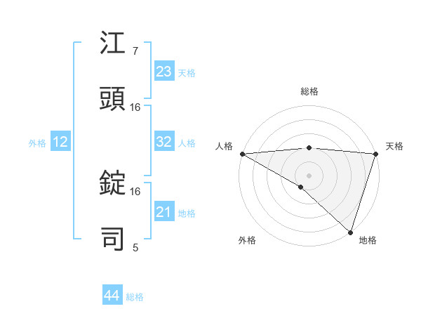 江頭 錠司さんの総格は44画の2点!