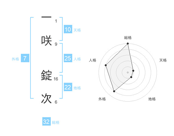 一咲 錠次さんを姓名の画数から五運を鑑定