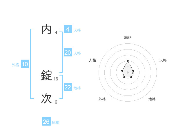 内 錠次さんの総格は26画の2点!