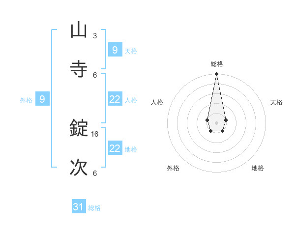 山寺 錠次さんの総格は31画の5点!
