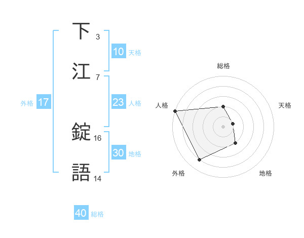 下江 錠語さんの総格は40画の2点!