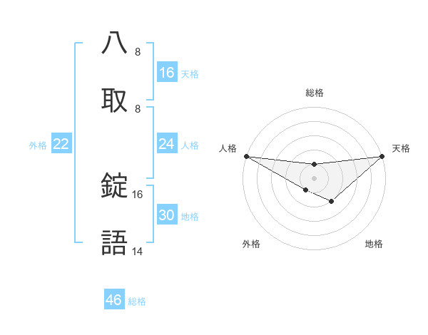 八取 錠語さんの外格は22画の1点!